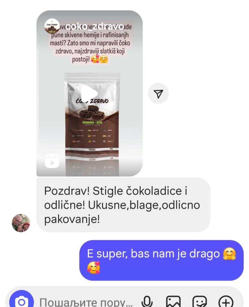 Bez veštačkih dodataka, bez skrivene hemije – samo ono što je prirodno, hranljivo i istinski ukusno.Jedan zalogaj donosi vam zadovoljstvo, energiju i osećaj da ste uradili nešto dobro za sebe. Jer zdravlje se ne gradi velikim odlukama, već malim izborima iz dana u dan. ČOKO ZDRAVO – priča o čokoladi, zdravlju i uživanju bez griže savesti.