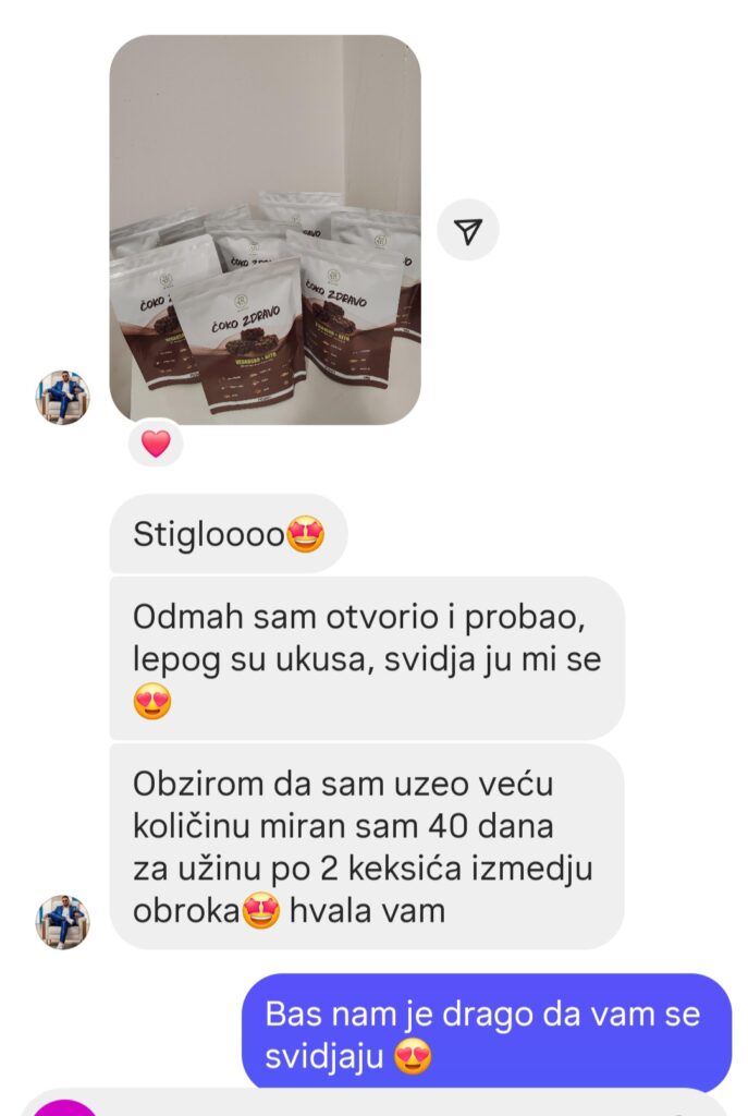 Verujemo da slatkiš ne mora da bude nezdrav da bi bio ukusan. Zato smo spojili ono najbolje iz prirode u jedan zalogaj – da vam damo energiju, zadovoljstvo i osecaj da ste uradili nesto dobro za sebe. Tako su nastali naši keksići od crne čokolade bogate kakaom i pažljivo biranih orašastih plodova. Bez nepotrebnih sastojka,bez skrivene hemije. Samo ono što je prirodno, hranljivo i istinski ukusno.